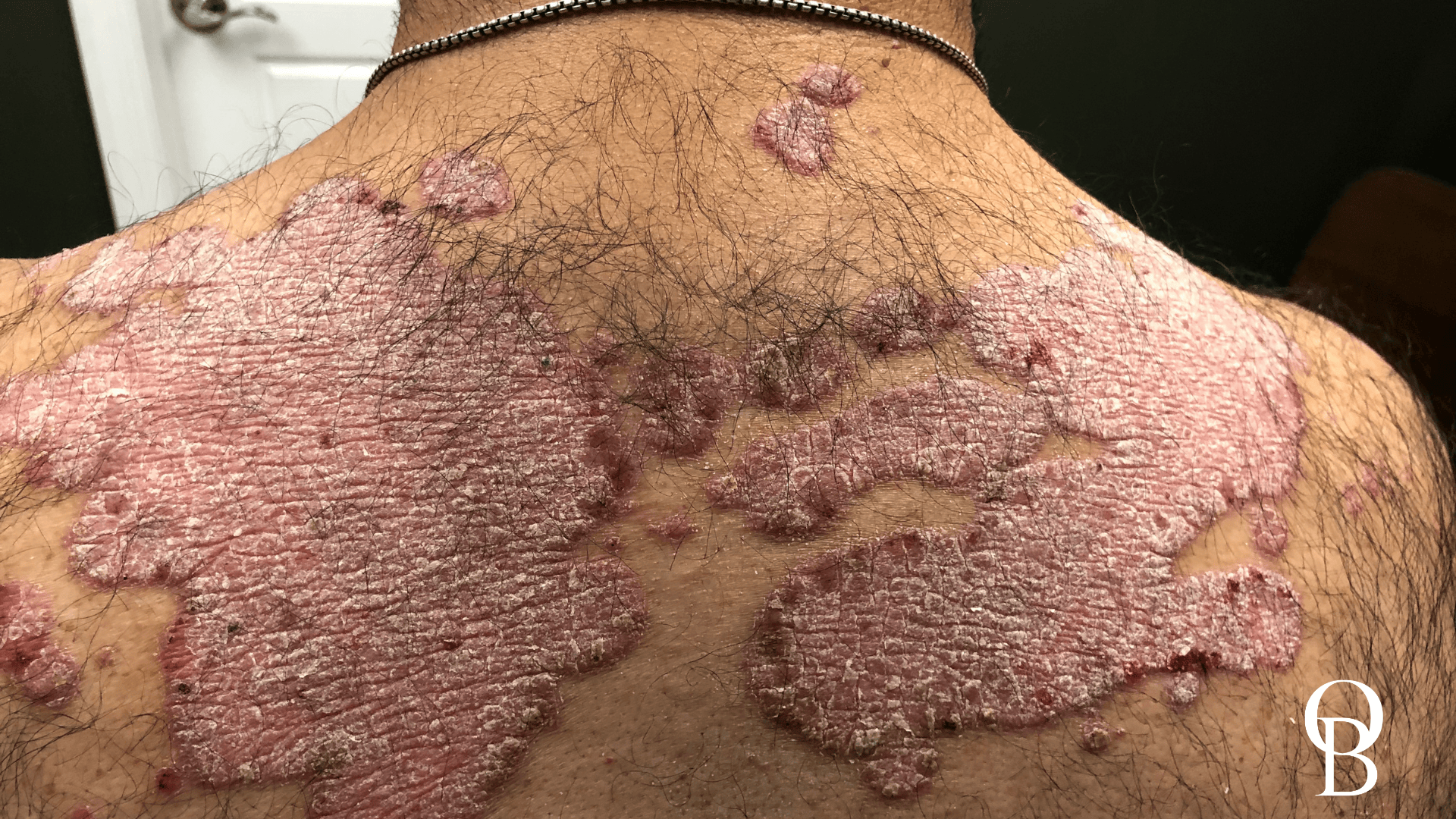 Their Psoriasis symptoms included severe Pruritus (itching), day and night, and thick, large, red, bleeding and inflamed rough skin plaques that covered their scalp, entire back, Torso, Arms and Legs.